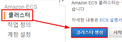 1. 이제 ECS 클러스터 부분에서 클러스터 생성을 선택합니다.