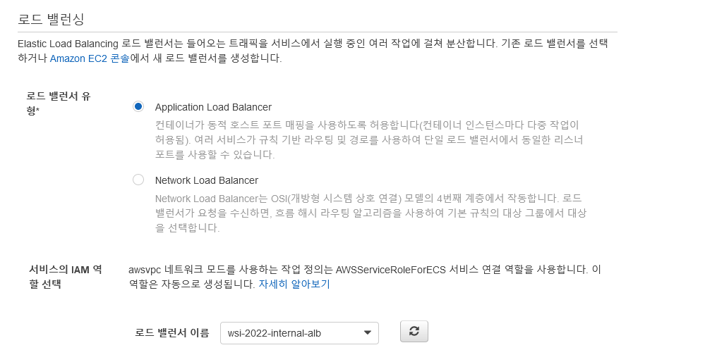 8. 로드 벨런싱 부분에서 Application Load Balancer를 선택합니다.