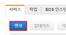 1. 생성된 클러스터 부분에서 서비스 → 생성을 누릅니다.