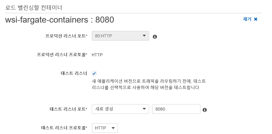 10. 프로덕션 리스너 포트 부분에서 80:HTTP를 선택합니다. 이것은 ALB에 기존 리스너를 말합니다. 그런다음 생성해둔 대상그룹을 선택하도록 합니다. 테스트 리스너를 추가해주도록 하겠습니다. 테스트 리스너 포트는 8080 Port로 설정합니다. 그런 다음 ALB 보안 그룹에 8080 Port를 주가해줍니다. 리스너는 자동으로 8080이 Attach 됩니다! 또한 보안을 고려하면 ALB에 아웃바운드를 80, 443, 8080을 열어주어야합니다.