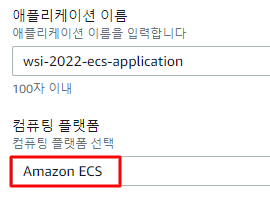 1. 애플리케이션 생성을 선택합니다. 그런 다음 애플리케이션 이름을 입력 후 컴퓨팅 플랫폼에서 ECS를 선택합니다. 그 후 애플리케이션 생성을 선택합니다.