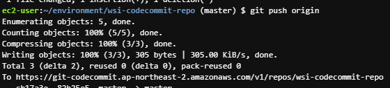 1. 먼저 Codecommit에 있는 코드중 한 문자를 바꿈으로써, Codepipeline이 다시 재 시작되고, 작업 정의에 버전이 업데이트 되는지 확인해보겠습니다.