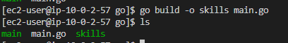 go build -o skills main.go #사용자가 컴파일한 파일에 이름을 지정하고 싶다면, -o Option을 적용합니다. -o는 Output으로 해석됩니다.