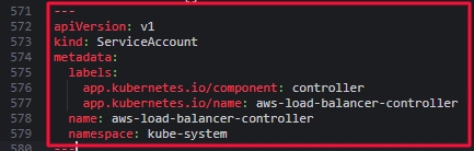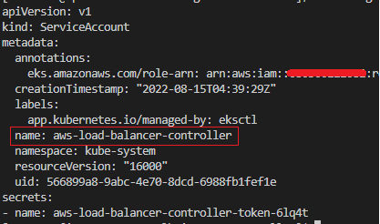 kubectl get sa aws-load-balancer-controller -n kube-system -o yaml