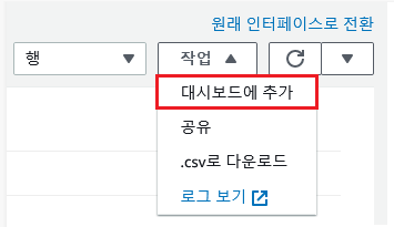2. 이제 선택을 했다면 오른쪽 작업에서 대시보드에 추가를 선택합니다.