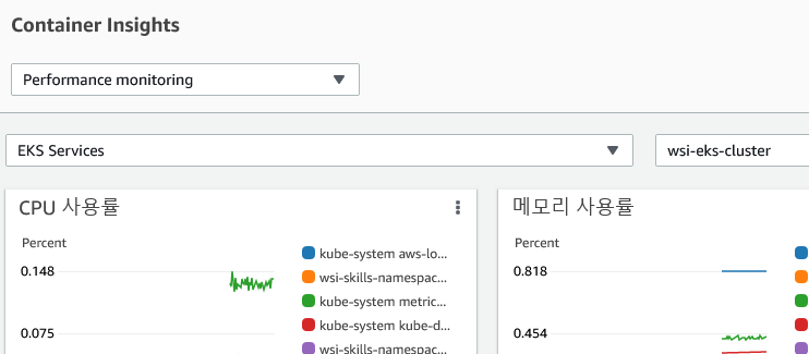 결과(3) 지표에도 생성이됩니다. 이처럼 EKS Cluster에 포함하는 모든 리소스들은 지표로 모니터링된다는 것을 확인할 수 있습니다.